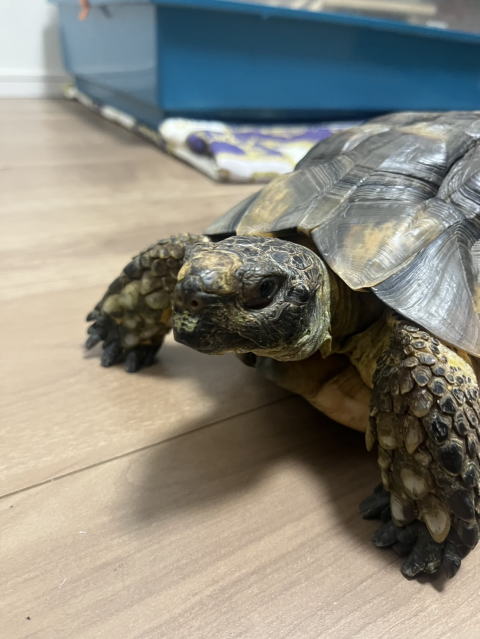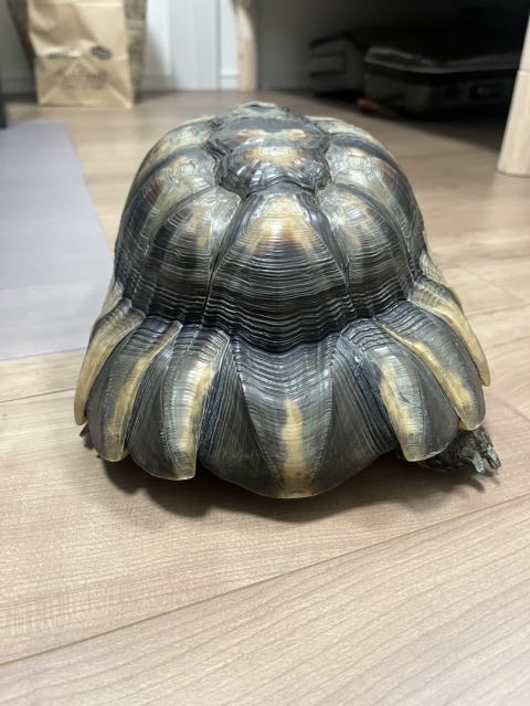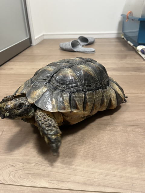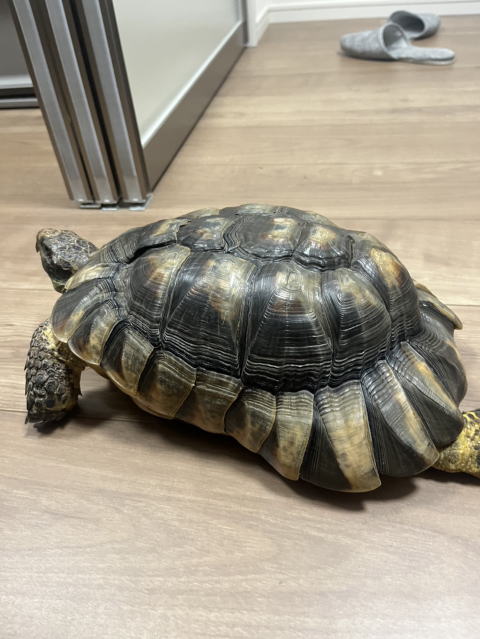 | 飼われていた環境 | 1.5m×2.0mの水槽を用意して2cmほどの木片を下に敷いておりました。ライトやヒーターは爬虫類用のものを使用していました。今月からは引っ越しをした関係で、亀にオムツを吐かせた状態で部屋に放し飼いを行っています。 |
