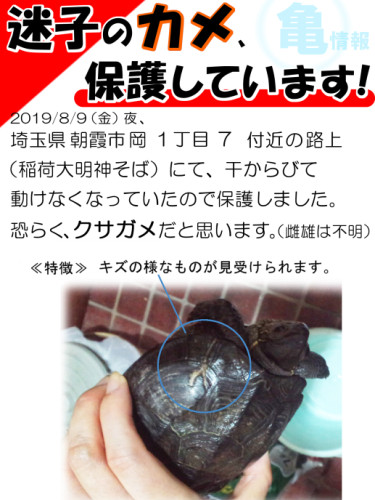 心当たりある方はメールアドレス turtle@aqua.plala.or.jp までご連絡ください。