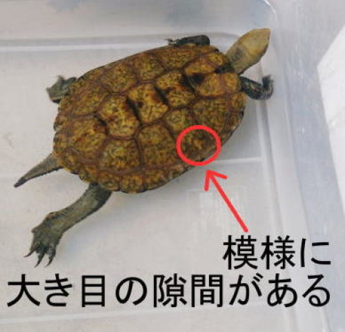 特徴:全体的に甲羅は丸っぽく模様が上か…